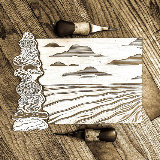 Lakeshore Cairn Linoprint