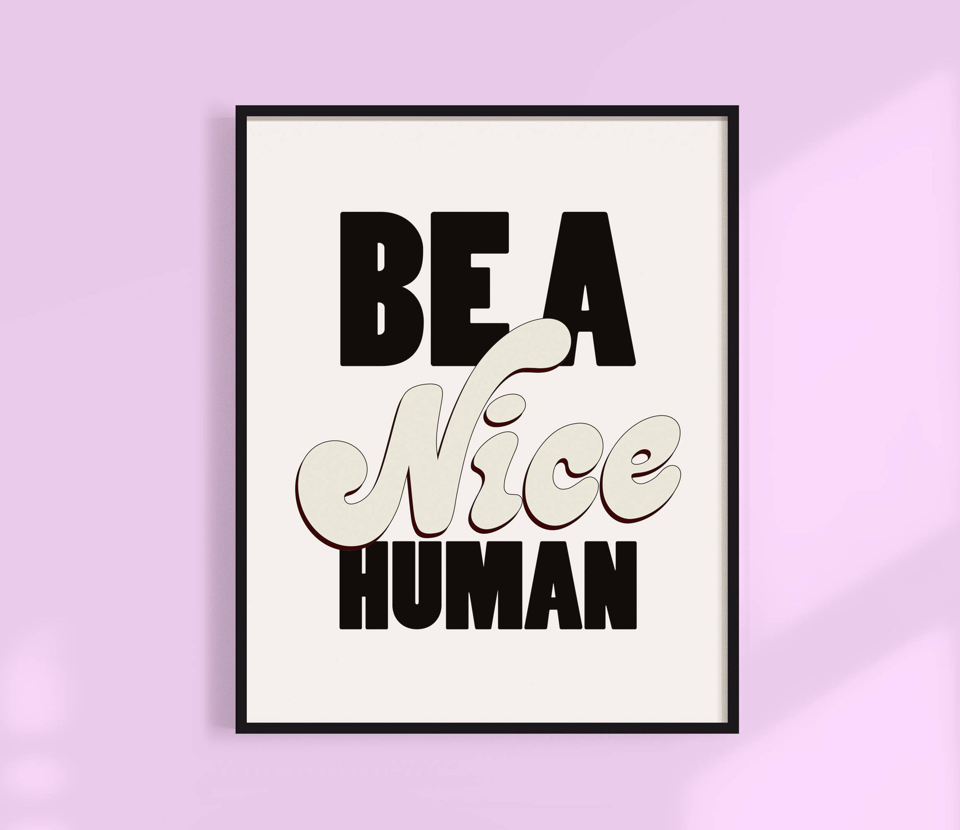 Be A Nice Human Print | Colorful Funny Art Print: Multi / 8 x 10"