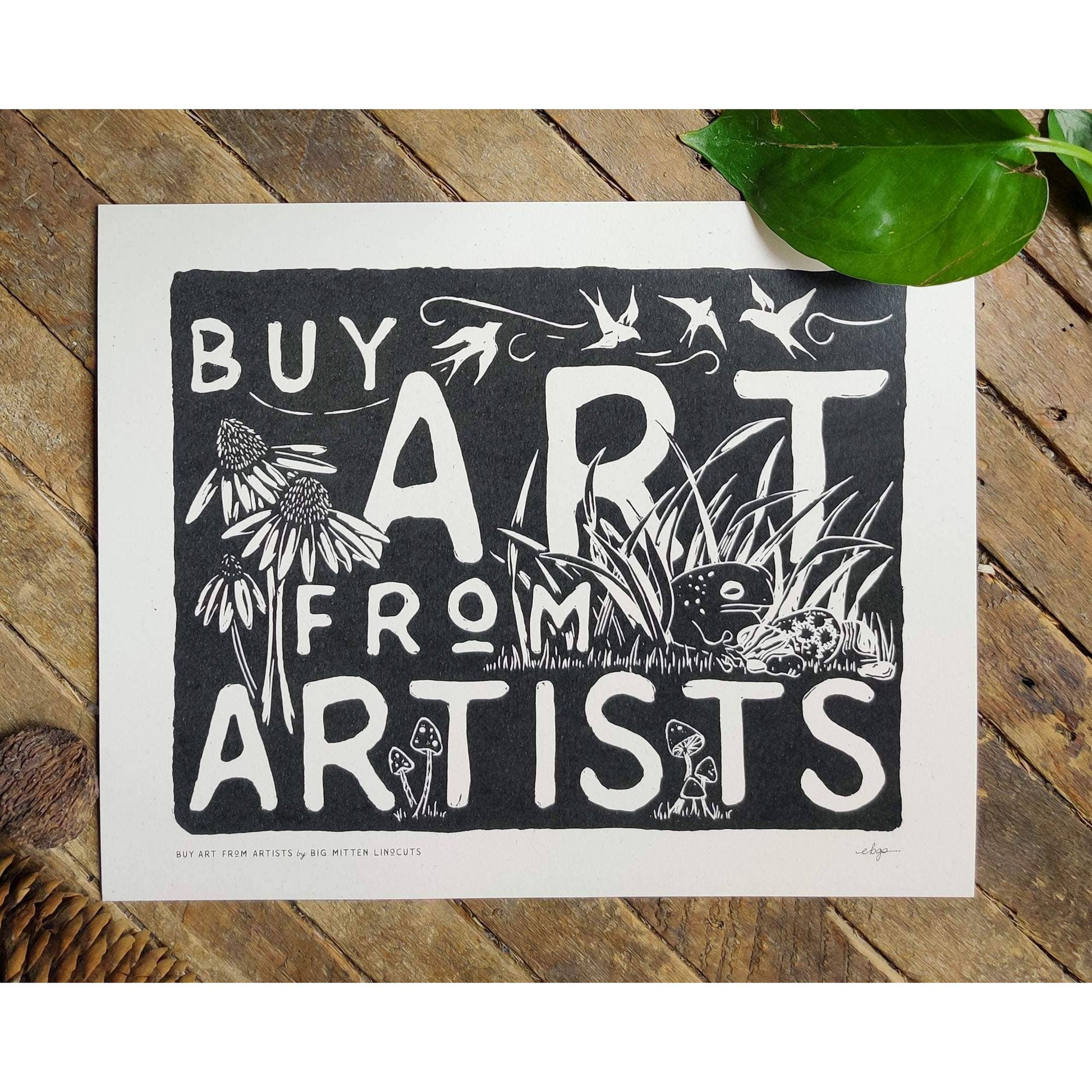 Linocut print of original art by Big Mitten Linocuts printmaker Betsy Stecker. This high-quality reproduction is printed on recycled, heavyweight 100-lb cardstock with natural fibers pressed throughout the paper. Entirely made by Michigan small businesses: the printmaker, hydro-powered paper manufacturer, and mom-and-pop printer are all from the mitten state. Print comes cello-wrapped with recycled chipboard backing for support. Standard frame size! Frame to 8x8, 8x10, or 10x8 depending on print. (Frame not included.)