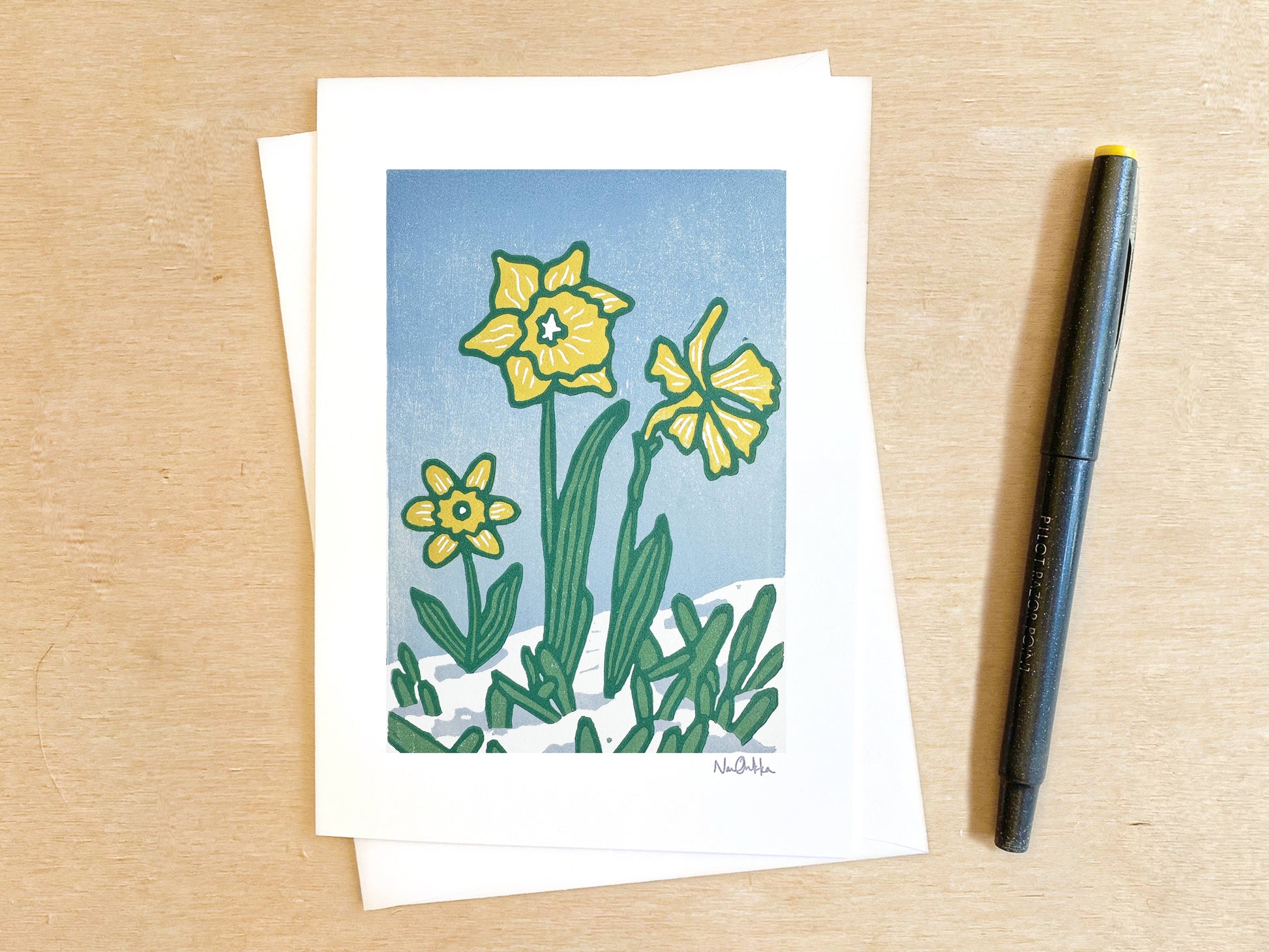 The greeting cards are printed locally in Minnesota at a green certified printer. The original image on the greeting card is a woodcut print. Nan creates the image by carving an image out of wood and printing it by hand onto paper. Nan works out of her home studio in Grand Marais, Minnesota. Your customers will love how versatile these cards are for any occasion.