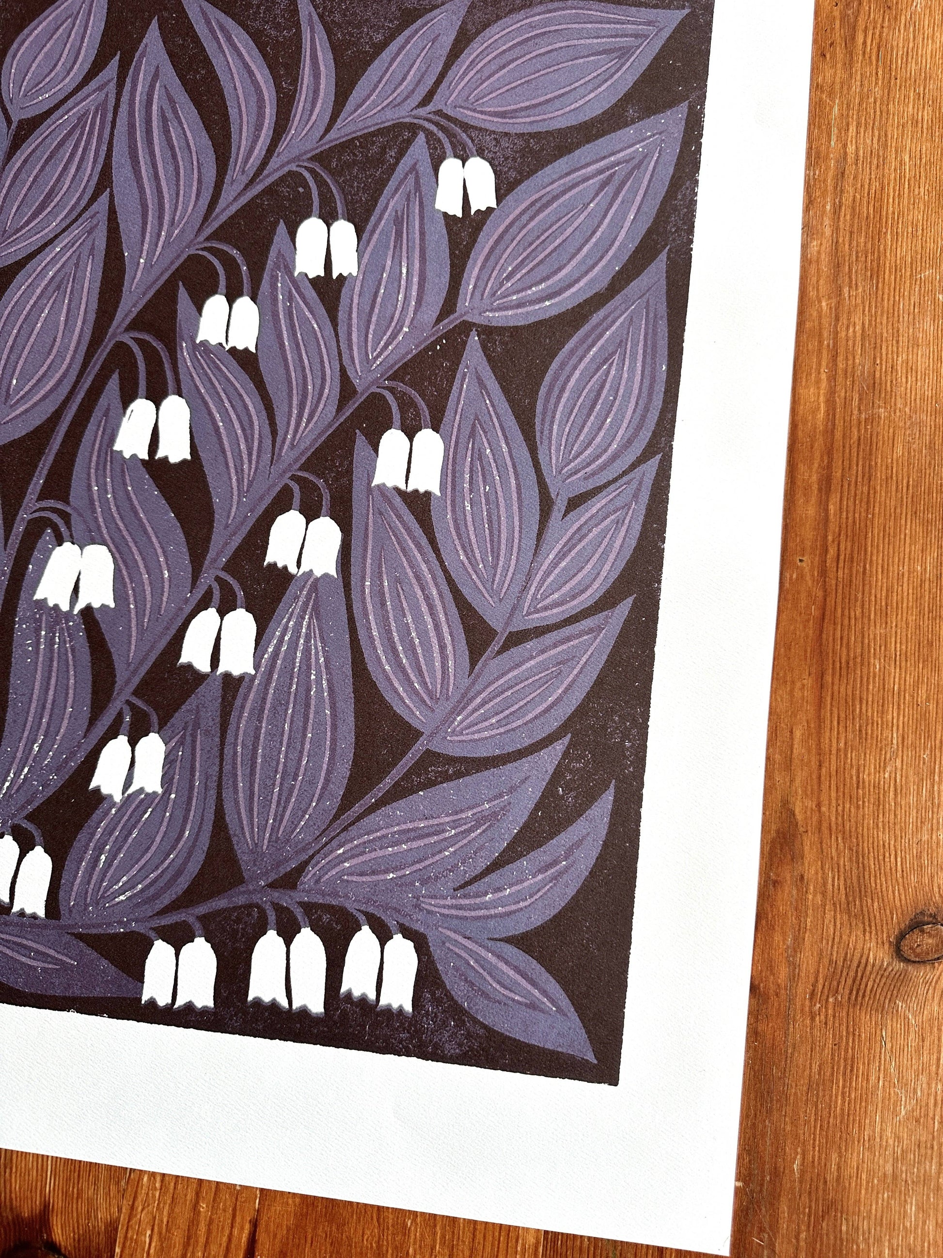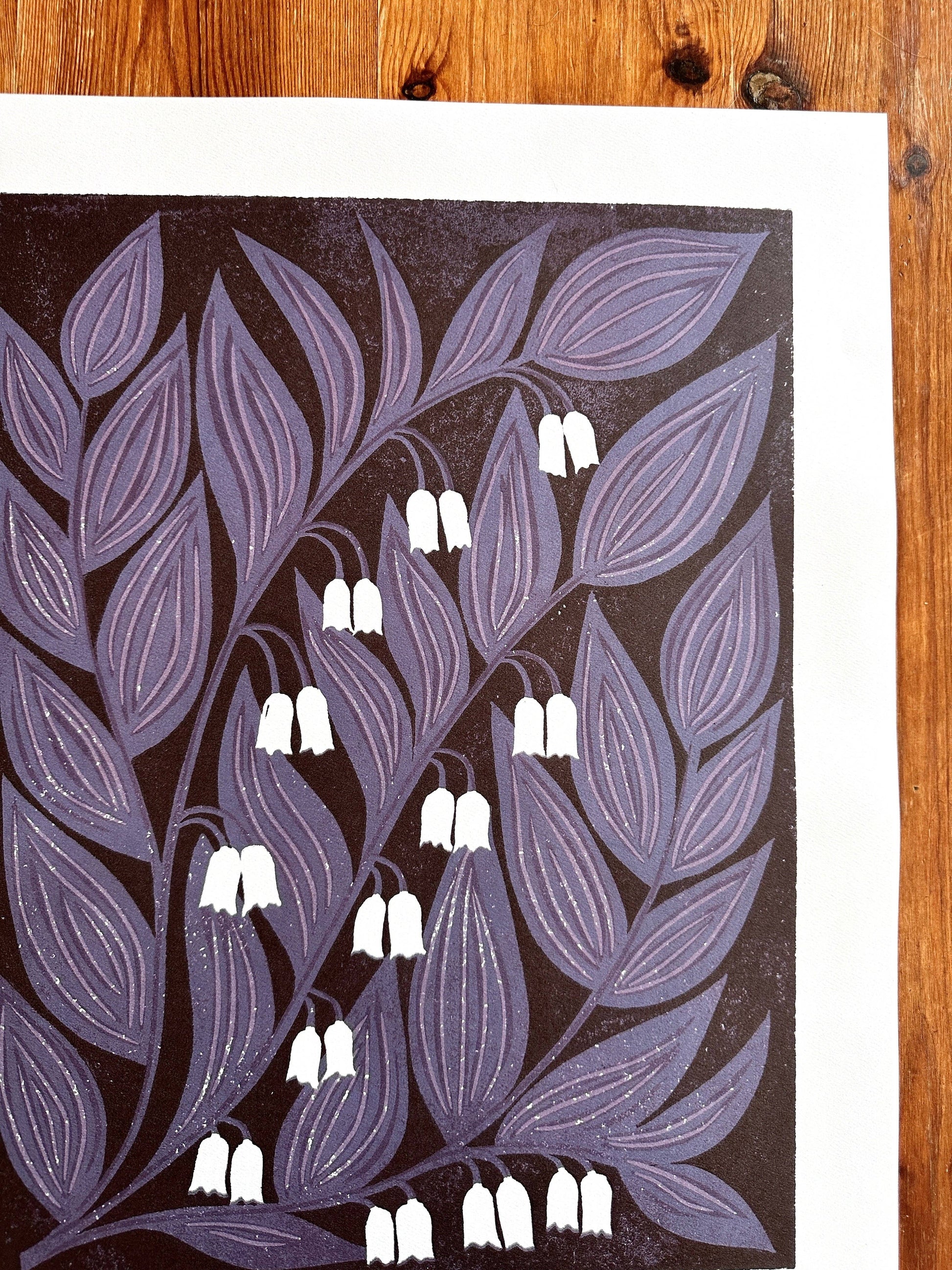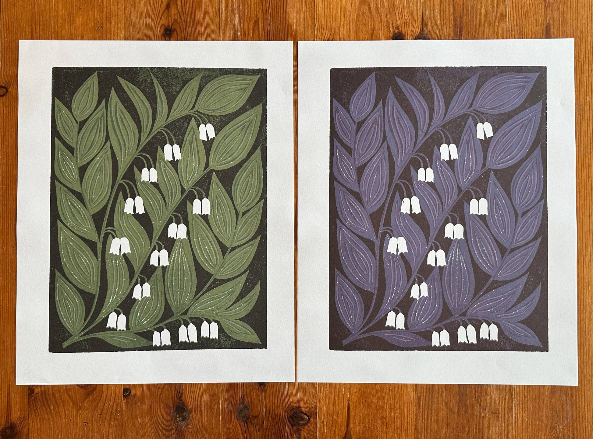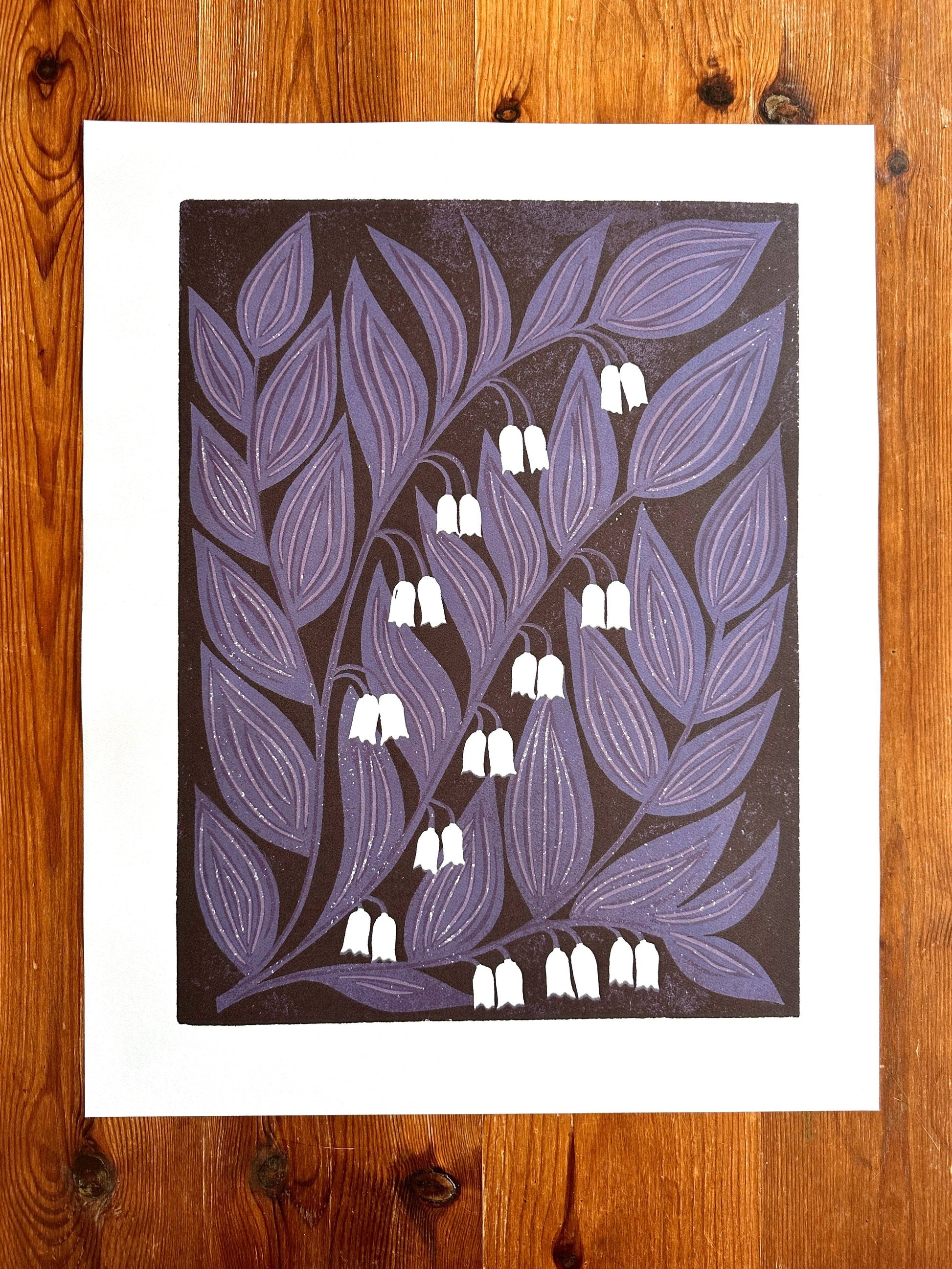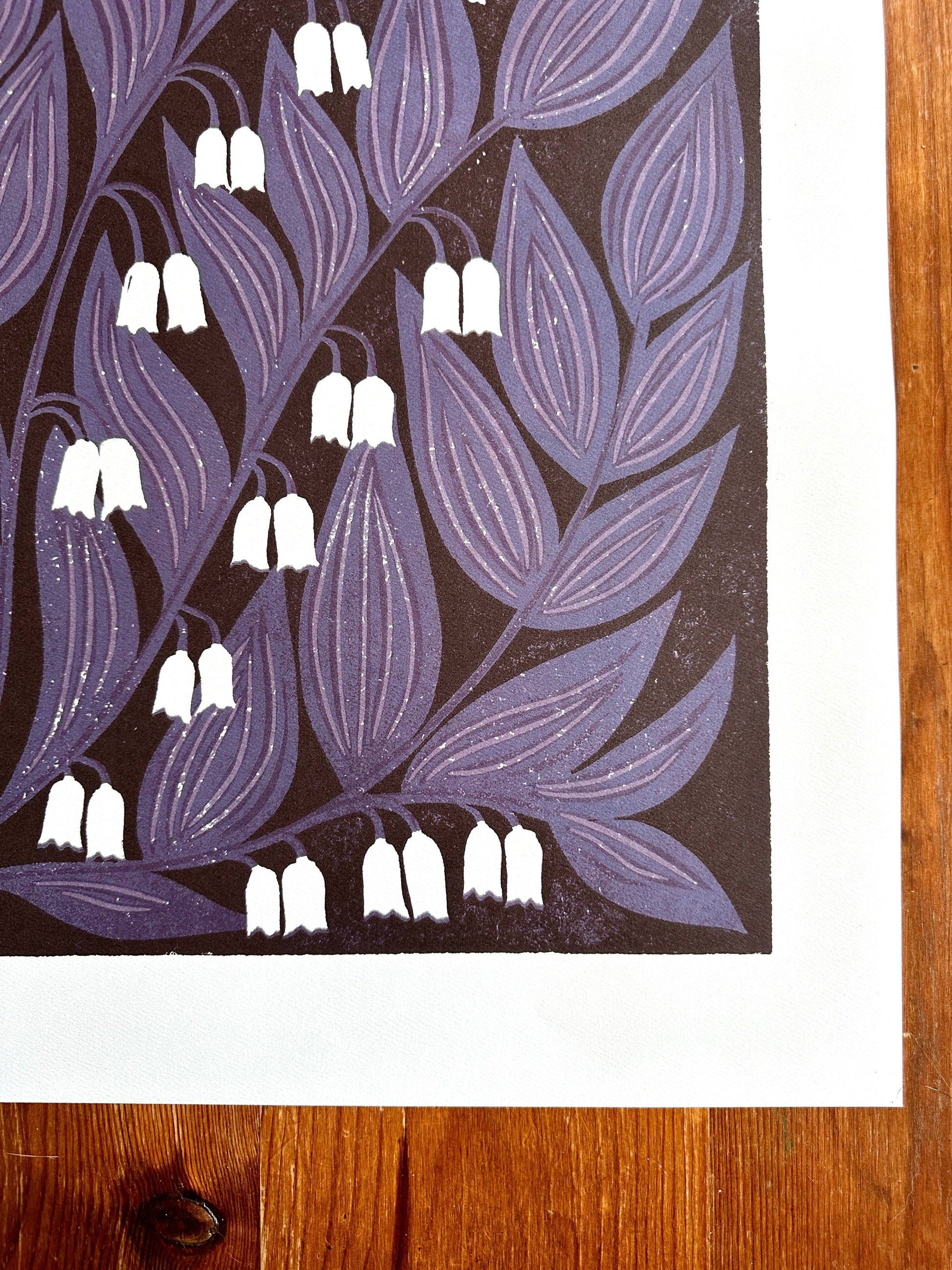 A poster reproduction of a Solomon's Seal reduction block print. The original print was done in four layers of reduction block print, and this is a high-quality poster reproduction on textured cream paper.