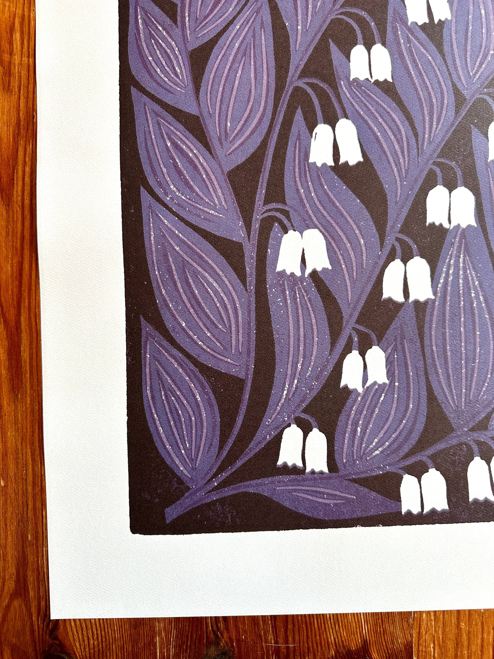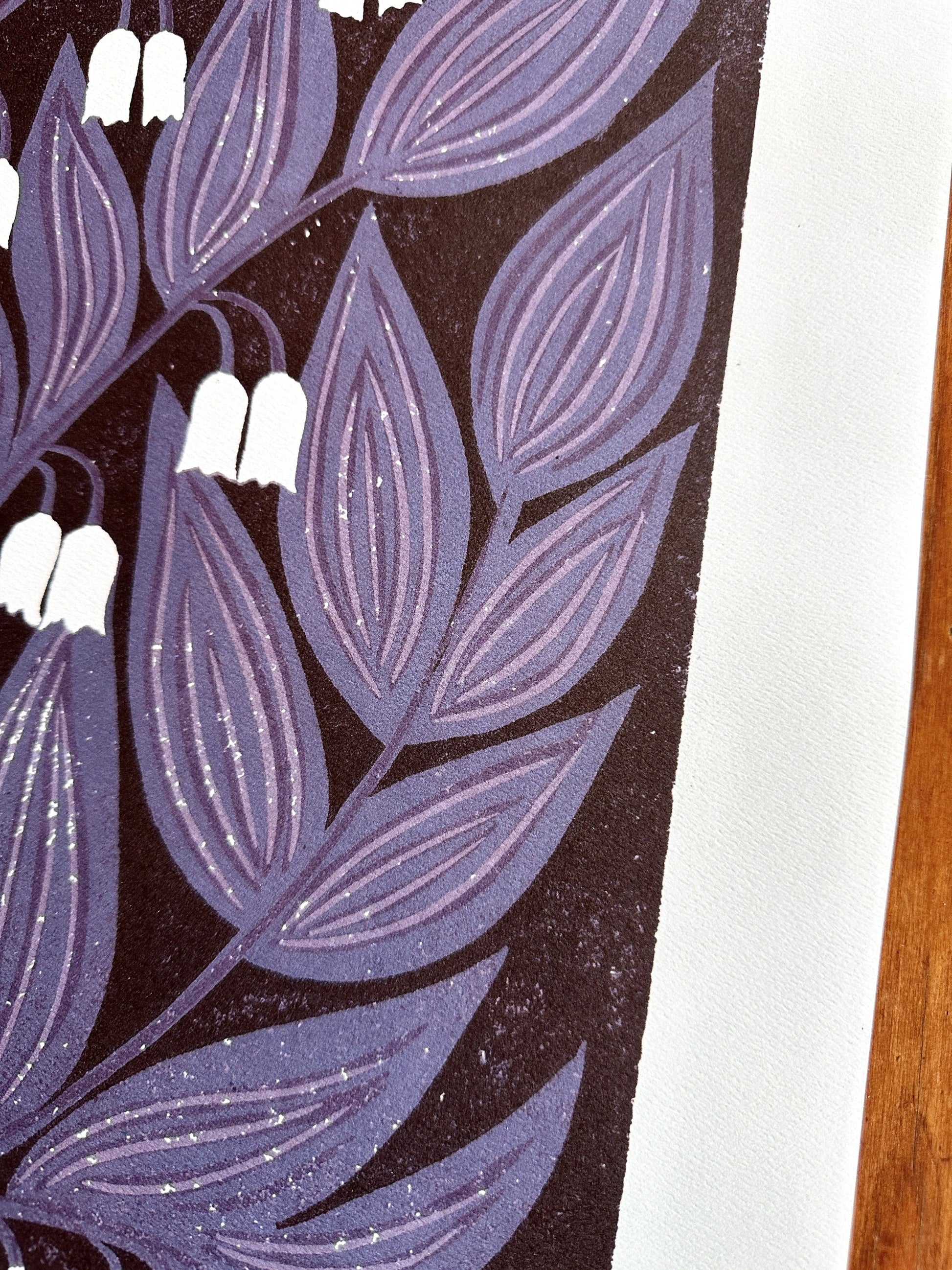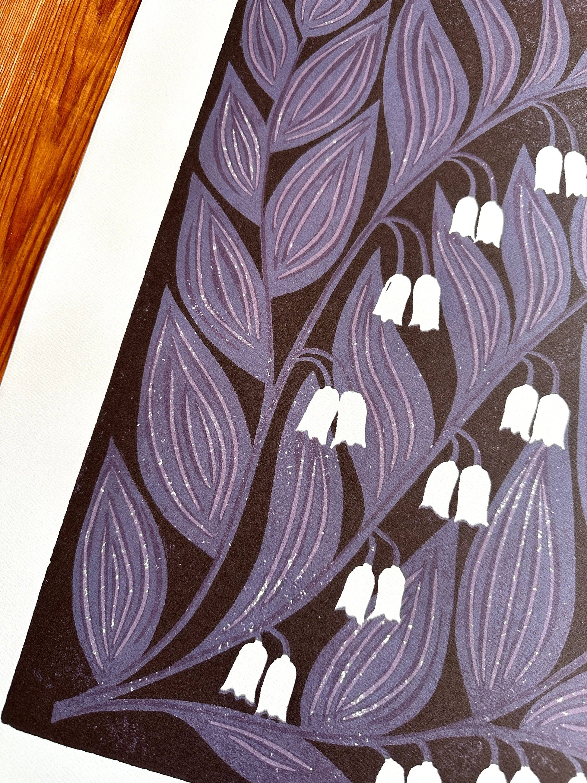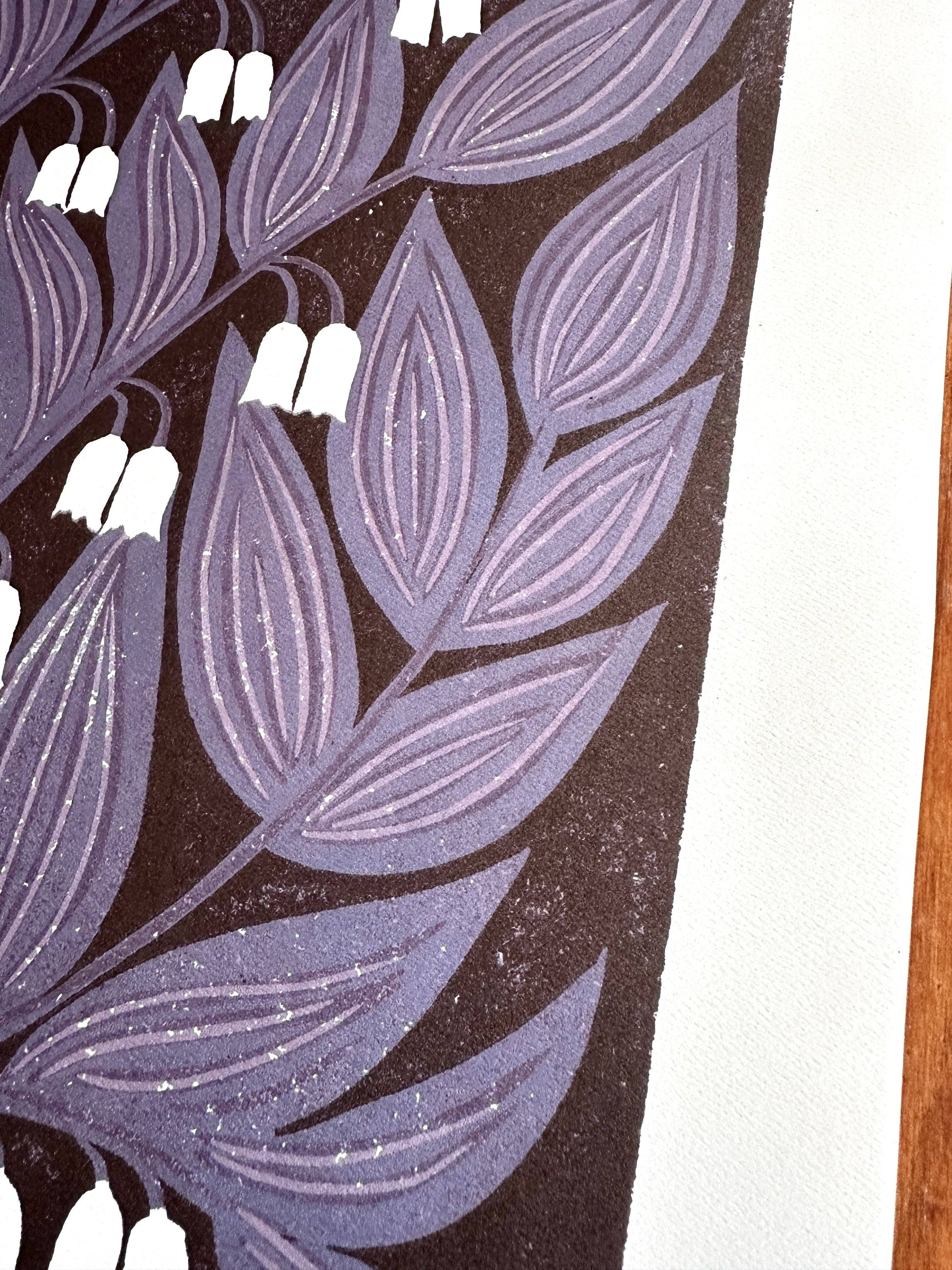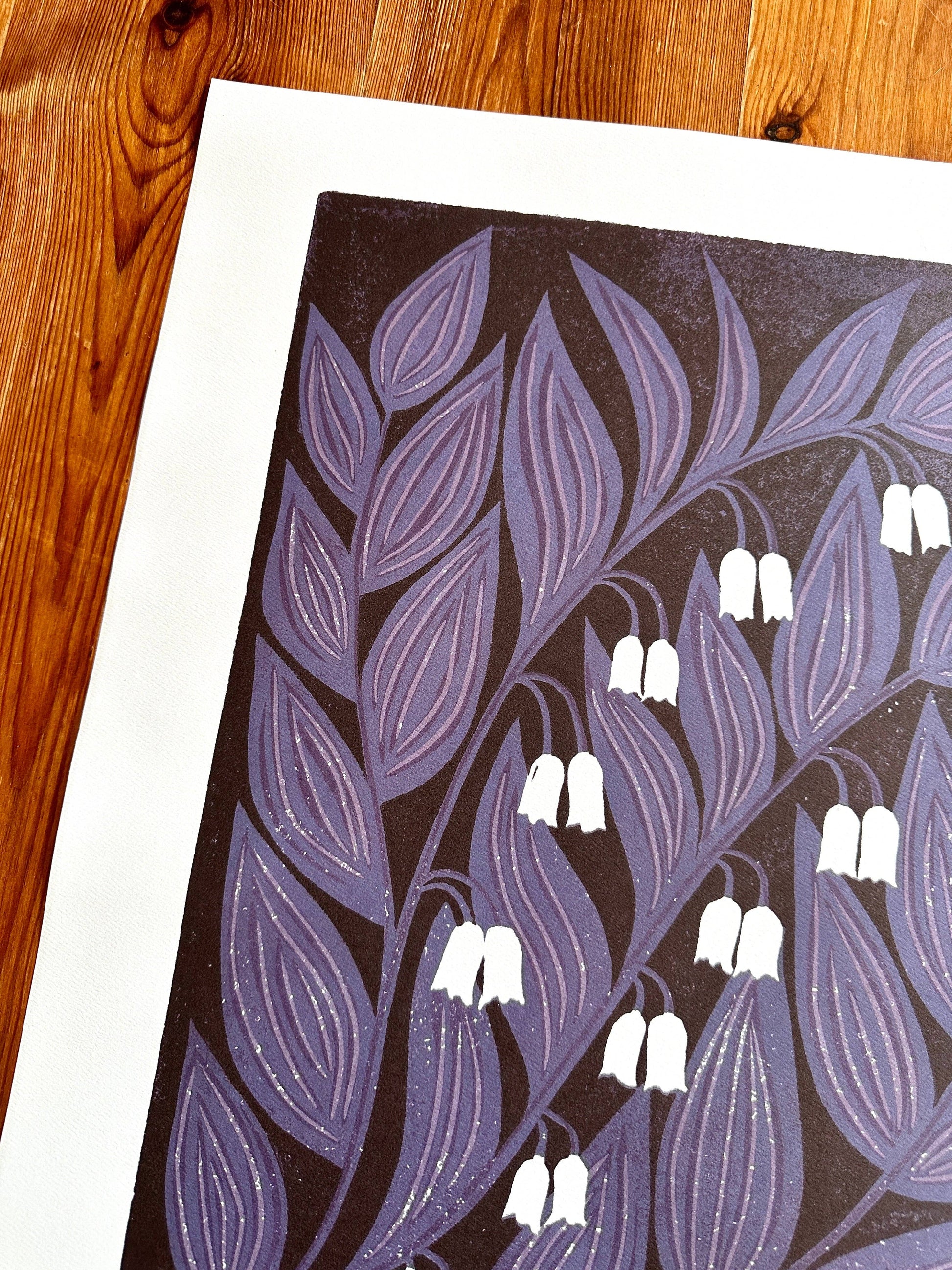 A poster reproduction of a Solomon's Seal reduction block print. The original print was done in four layers of reduction block print, and this is a high-quality poster reproduction on textured cream paper.