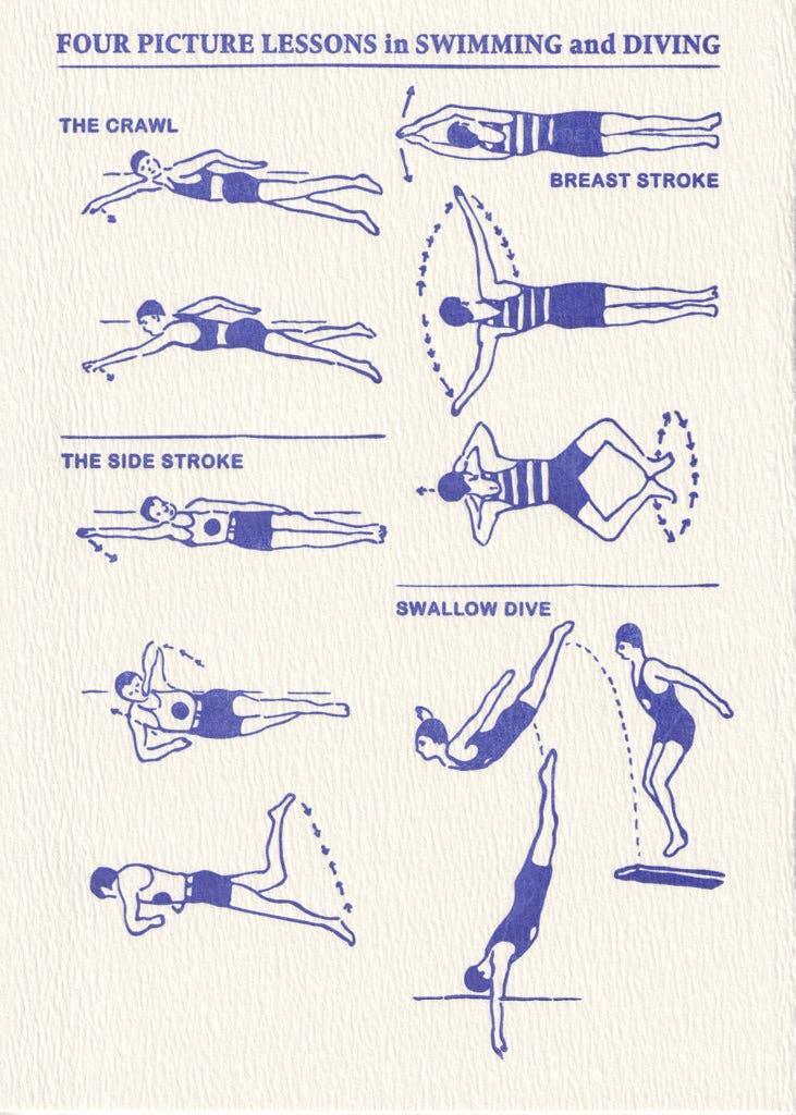 Swimming and Diving are things you can only learn by doing...but if you need a reminder of what a good crawl stroke looks like check out this card.
